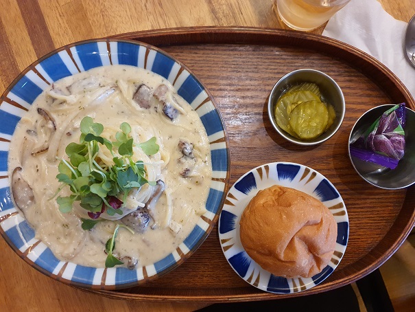 크림파스타입니다. 저는 개인적으로는 맛은 별로였는데, 조카는 맛있다고 하면서 잘 먹었고, 같이 나온 빵을 크림 소스와 같이 먹는 것이 괜찮다고 하였습니다.