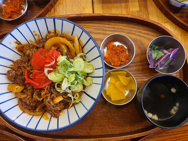 소보루 광부덮밥입니다. 겉보기에도 양이 상당히 많아 보이는데, 중년의 운동을 잘 안하는 사람에게는 양이 벅찰 정도로 많았습니다.