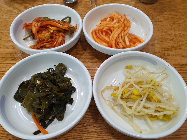 밑반찬으로는 콩나물, 무생채, 김치, 미역이 나왔는데, 깔끔하고 정갈한 맛이었습니다.