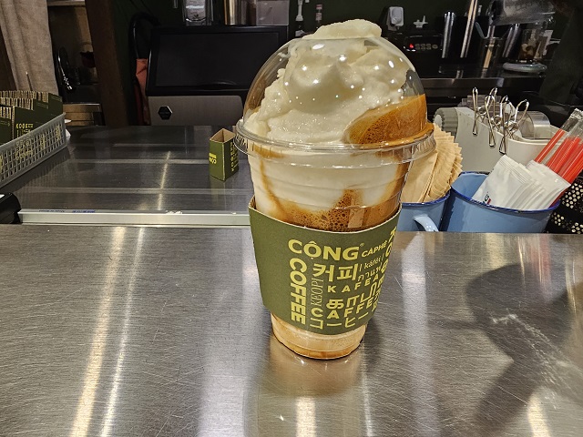 그와 같은 베트남 커피 전문점 중 하나인 콩 카페는 한국에도 오픈하여 나름대로 인기를 누리고 있고, 베트남에서 먹었던 커피의 맛을 상당히 많이 재현한 것 같습니다.