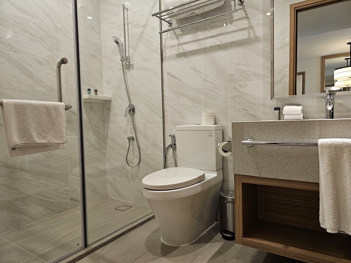 거실에는 화장실이 하나 더 있어서 4인 가족이 숙박하더라도 화장실로 인해 불편함이 전혀 없었습니다.