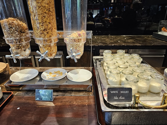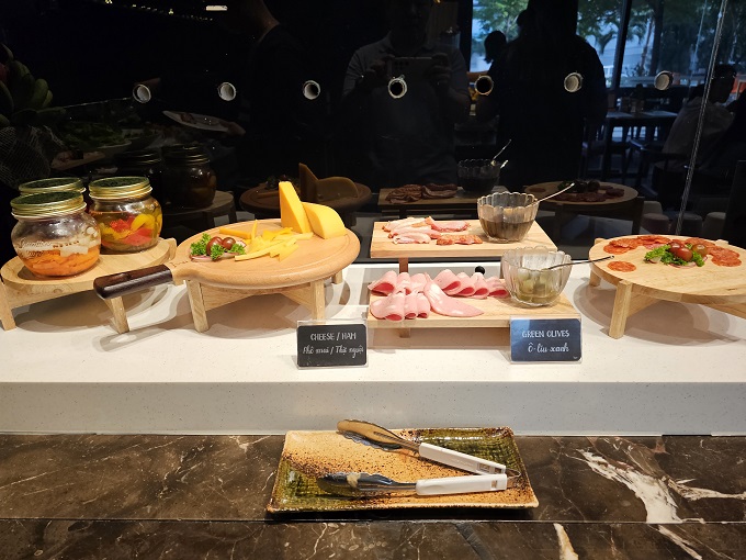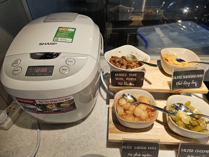 다양한 빵과 우유와 쨈입니다. 개인적으로는 바게트가 바삭해서 맛이 있었고, 다양한 야채와 햄, 베이컨 등을 넣어 소스, 버터 등과 함께 먹으면 반미 같은 느낌으로 맛이 있게 즐길 수 있는 것 같습니다.