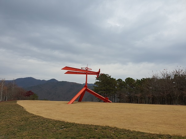 뮤지엄으로 향하는 길에는 시원한 잔디와 상징적인 레드 조형물이 설치해 있었는데, 상당한 미적감각이 돋보였습니다.