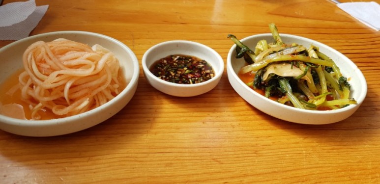 기본적으로 제공되는 반찬입니다. 열무와 무생채인데, 반찬은 정갈하고 깔끔하며 맛도 괜찮았습니다.