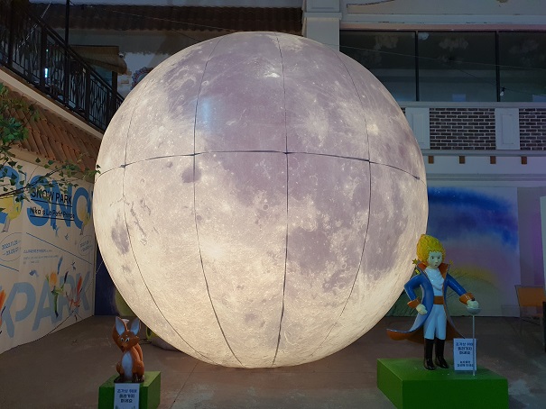 눈썰매를 타고 실내로 다시 들어오면 어린왕자와 행성을 형상화하여 사진을 찍을 수 있도록 만든 포토존이 있습니다. 하지만 생각보다는 사진이 아주 잘 나오거나 하지는 않는 것 같습니다.